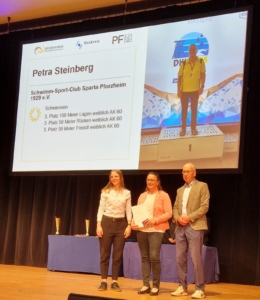 In diesem Jahr konnte Petra Steinberg für den SSC Sparta Pforzheim einen Preis für ihre sportlichen Leistungen im Jahr 2025 entgegen nehmen. Sie wurde insbesondere für ihre drei dritten Plätze bei den Deutschen Masters-Meisterschaften geehrt. Herzlichen Glückwunsch.